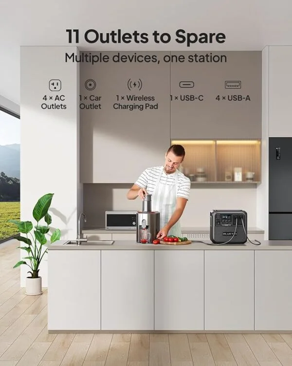 • [Power All Your Needs] – The AC180 boasts 1800W output and 11 outlets to handle almost anything you plug in. With a tap on the BLUETTI App, you can boost it to 2700W for your higher needs.