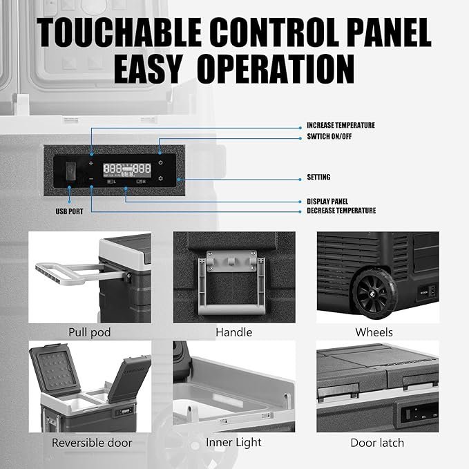 Oferta por tiempo limitado:Congelador portátil para auto con ruedas Alpicool UD65 con dos compartimentos, refrigerador de 12 voltios, 60 cuartos de galón de enfriamiento rápido, con 12/24 V CC y 100-240 V CA para exteriores, camping, autocaravanas y camiones.