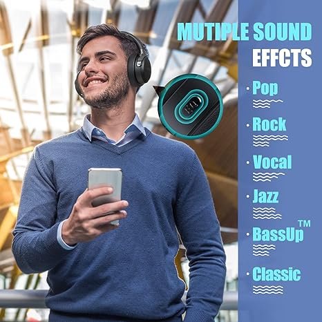 🔥 ¡Gran Remate! Todo desde S/19:BERIBES Auriculares Bluetooth sobre la oreja, tiempo de reproducción de 65 horas y 3 modos de música ecualizador, auriculares inalámbricos con micrófono, auriculares estéreo de alta fidelidad plegables ligeros, graves profundos para el hogar, oficina, teléfono celular, PC y TV